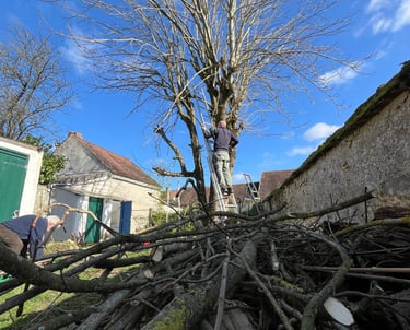 Le majestueux marronnier du jardin avait besoin d'une nouvelle coupe pour être encore plus beau à la belle saison.