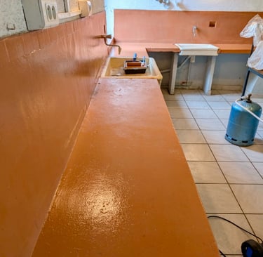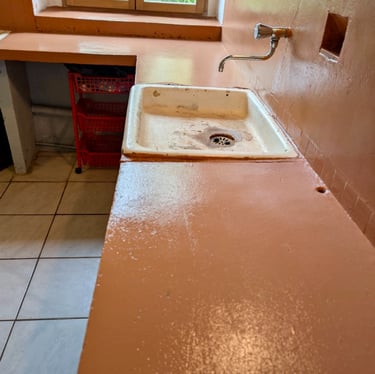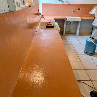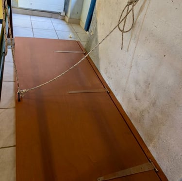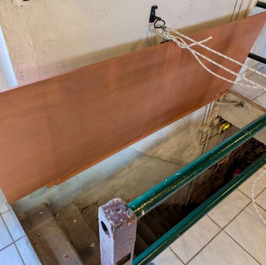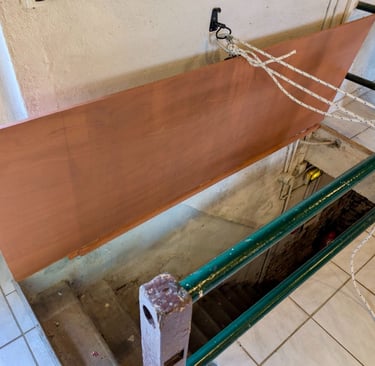 Construction d'une trappe pour sécuriser et isoler la cave. Et en prime, un coup de frais pour les plans de travail de la cuisine qui ont été repeints.
