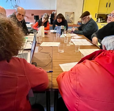 Assemblée générale du Bolet : Après un bon déjeûner, et le boeuf bourguignon du président de l'asso, c'est parti pour l'ordre du jour ! Au programme, bilan 2024, approbation des comptes et projets pour 2025.