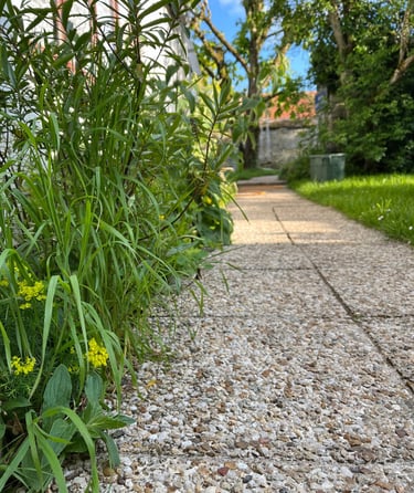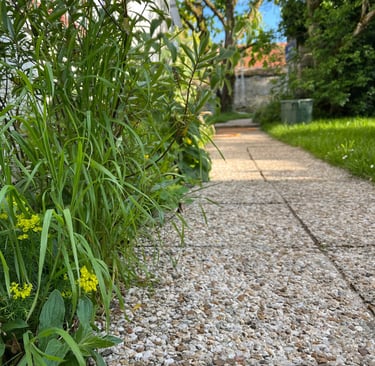 sur les dalles menant aux sanitaires.