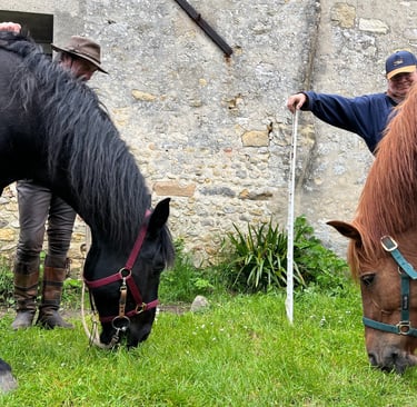Des visiteurs insolites ! Le refuge a accueilli les Cavaliers de Saint Georges et leurs montures qui ont fait étape à Recloses lors de leur voyage de Paris jusqu'aux Saintes Maries-de la-Mer.