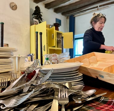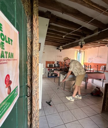 Un peu de tri, ça peut pas faire de mal. On en profite pour optimiser les équipements de la cuisine du gîte.