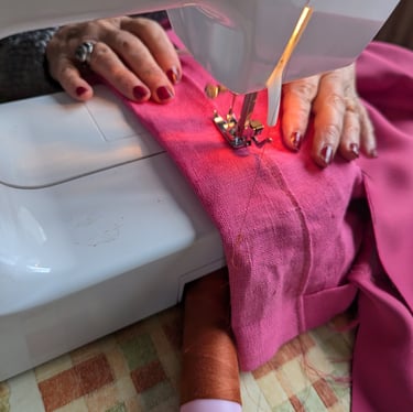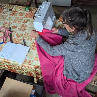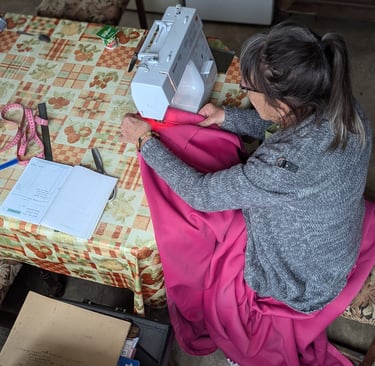 Et comme les petits travaux ne s'arrêtent jamais Anne, de permanence ce week-end, s'est lancée dans la confection de rideaux tout neufs pour la pièce des gardiens du gîte !