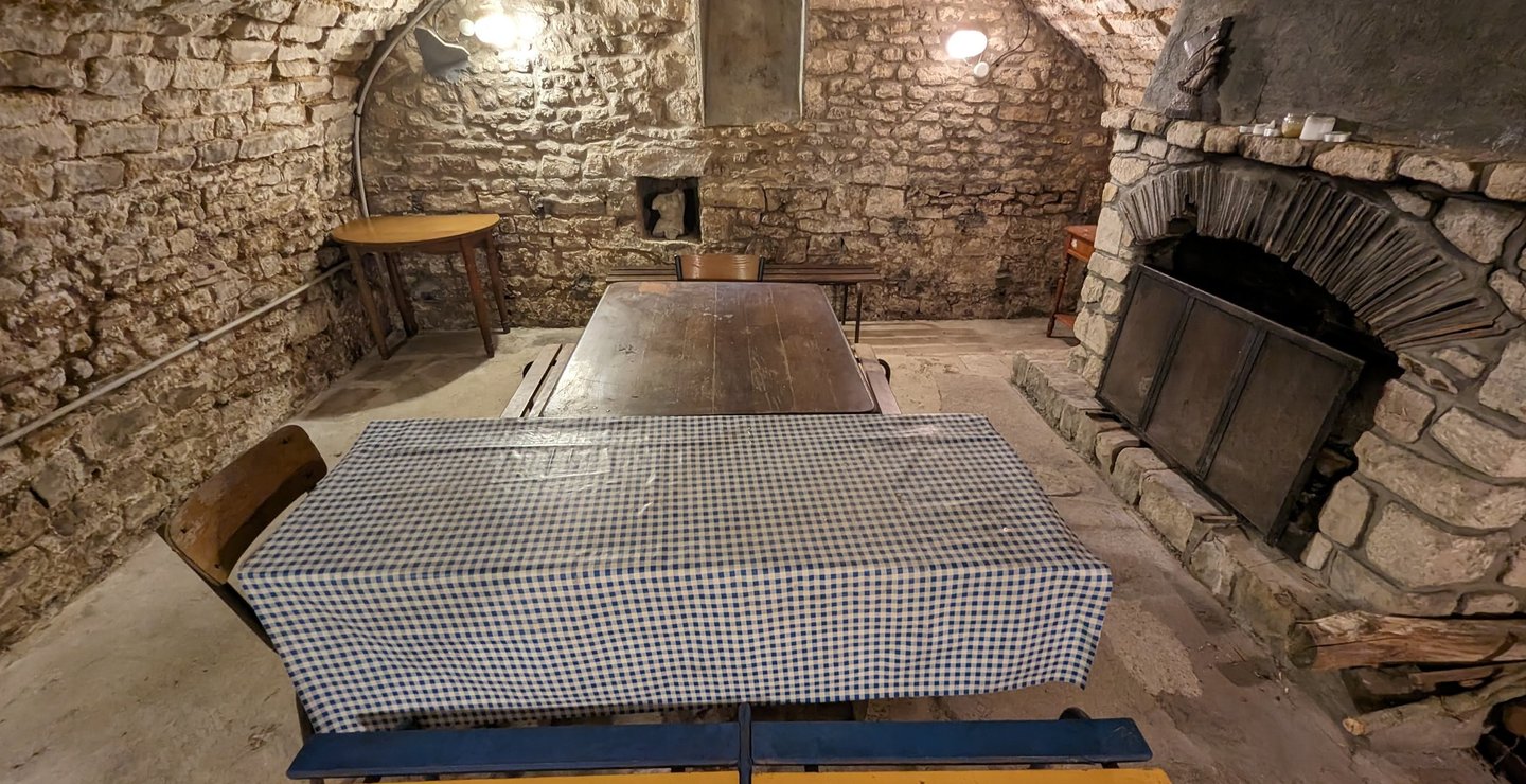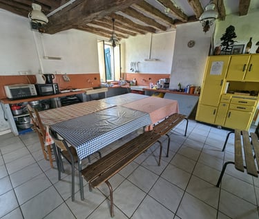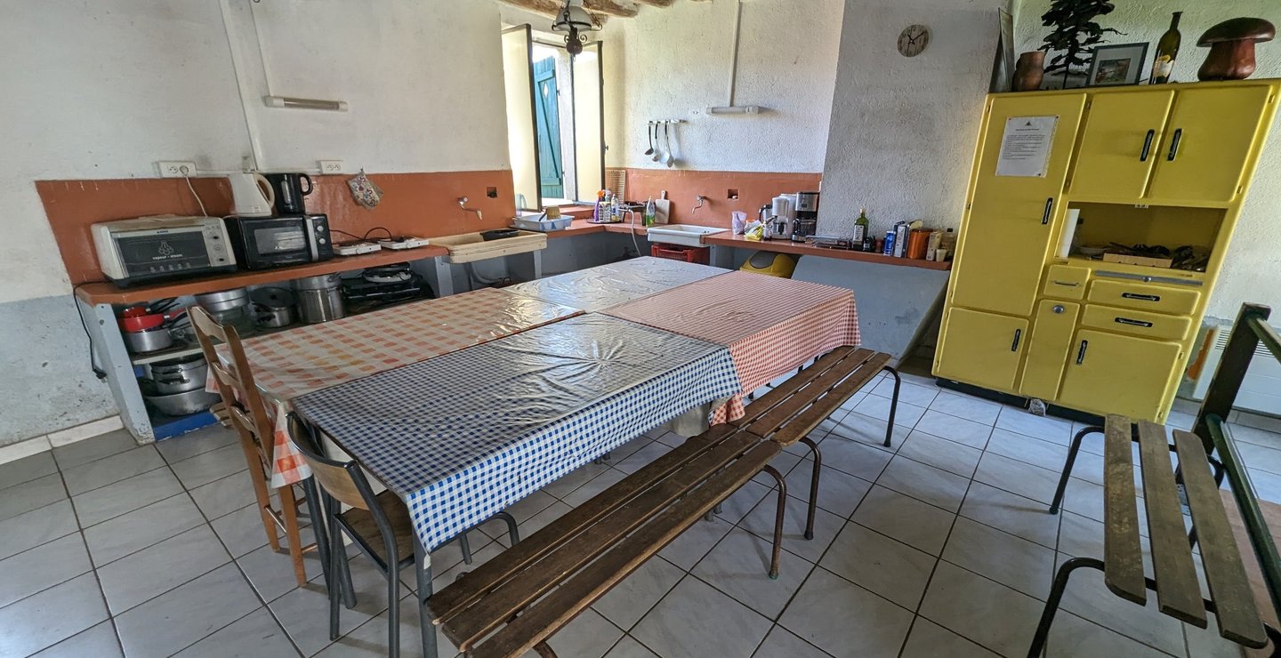 La cuisine-salle commune est équipée de tous les ustensiles nécessaires à la préparation des repas pour 15 personnes (2 réfrigérateurs, vaisselle, réchauds électrique, micro-onde, cafetières).